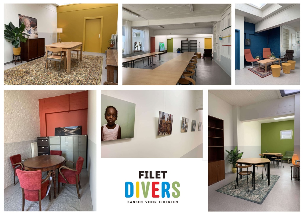 Voor het Kansenhuis Filet Divers in Antwerpen vroeg financieel ondersteuner Bond Zonder Naam of ik een voorstel wilde maken om de ruimtes waarin zij werken en bezoekers ontvangen, op te knappen en een nieuwe ´look & feel´ te geven. Dit met een beperkt budget, omdat zij afhankelijk zijn van giften. Elke gedoneerde euro gaat (on)rechtstreeks naar mensen die niet gezien of gehoord worden in de samenleving, en dat wordt zorgvuldig gedaan. Een prachtige uitdaging voor een zeer dankbare doelgroep die ik dan ook met beide handen heb aangepakt.