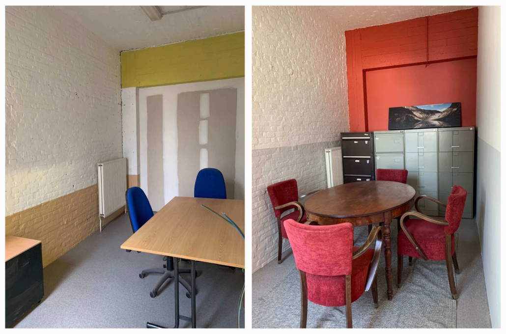 In samenwerking met o.a. Het bouwteam van Vercauteren interieurbouw, de handige mensen van Manus en door de gulle gift van kwaliteitsverf door Bosspaints (Colora) kregen de ruimtes hun basis, vorm en kleur.
