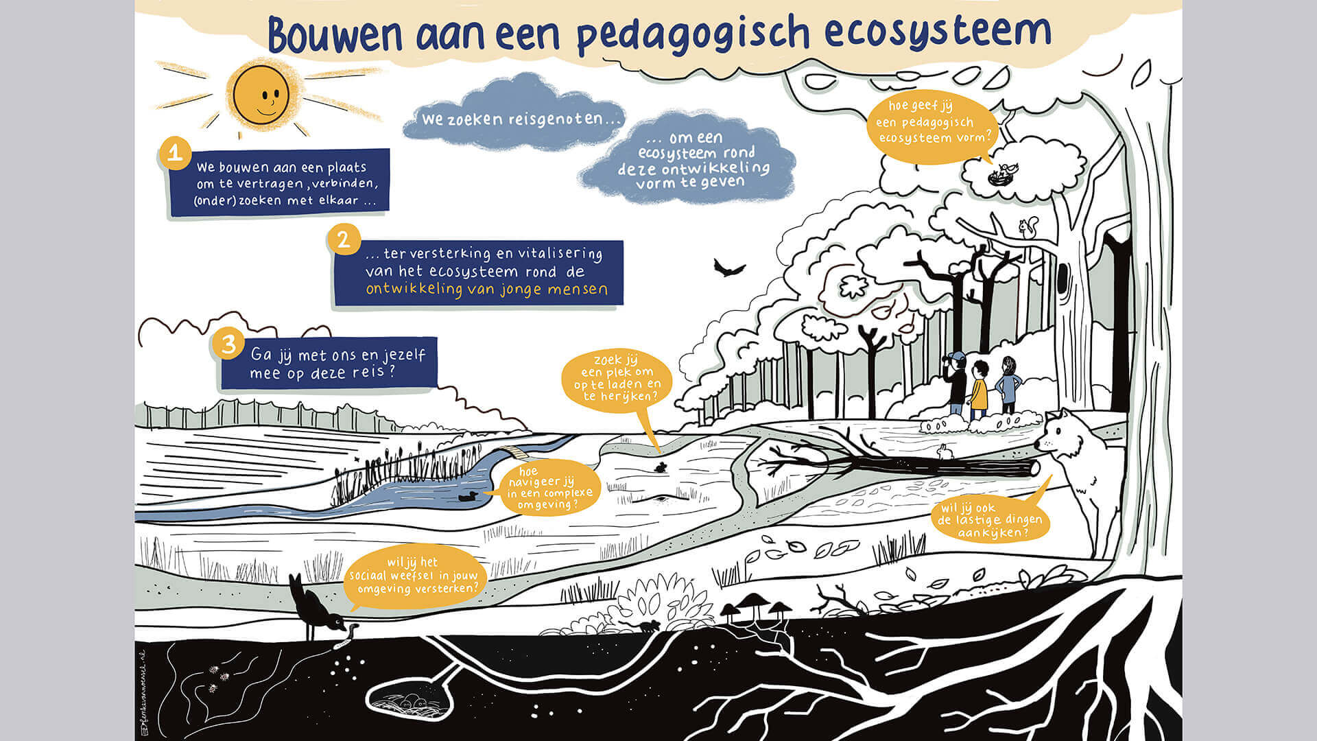 In het onderwijs is een goed werkend pedagogisch ecosysteem van groot belang. De schoolleiding vroeg mij om een visual te maken om zo medewerkers mee te laten denken over hoe ze dit systeem in samenwerking optimaal kunnen laten werken.