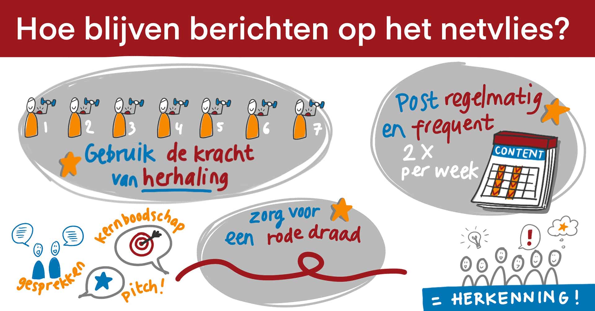 🔸 Gebruik de kracht van herhaling: “dat heb ik al eerder verteld”, zeggen klanten weleens. Heel goed. Vertel het nog een keer. Een boodschap blijft niet zomaar hangen.