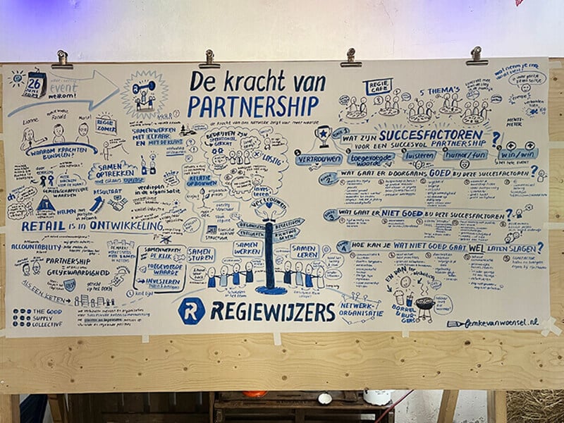 Daarna was het tijd voor interactie in het Regiecafe, waarbij de input van de deelnemers werd genoteerd. Dit alles samengevat op een groot vel papier.